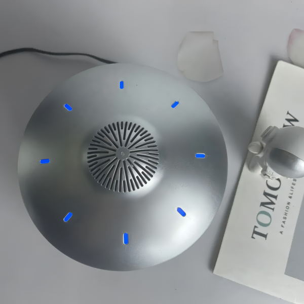 Automatic Levitation Technology: With just the touch of a button. the UFO speaker magically rises. floating in the air while spinning. offering not only a visual spectacle but also impeccable acoustics. Futuristic Design: Its matte silver finish and integrated blue lights give the UFO a cutting-edge look. making it a conversational centerpiece in any setting. High-Quality 3D Sound: Enjoy 360° surround sound without loss or distortion. thanks to its innovative sound projection that fills any space with clarity and depth. Easy to Use: Its simple interface makes it easy to set up and use. allowing you to enjoy your music within minutes. Perfect Gift: Looking for a unique gift for that special someone? The UFO speaker is ideal for technology lovers. design enthusiasts. and those looking to add a touch of magic to their home.