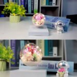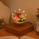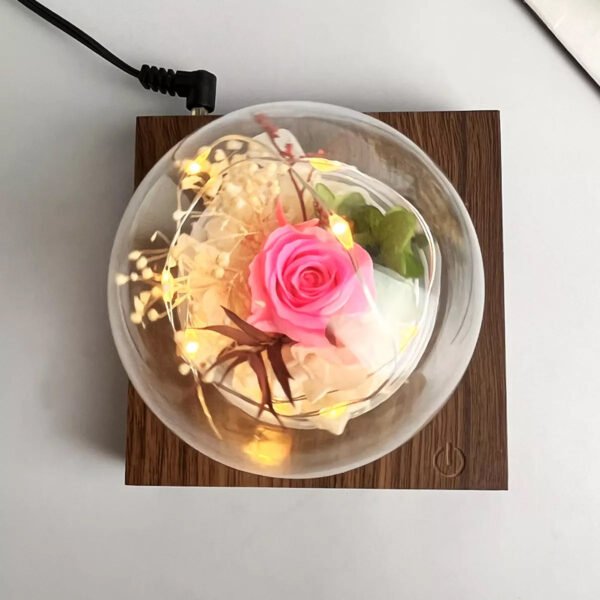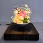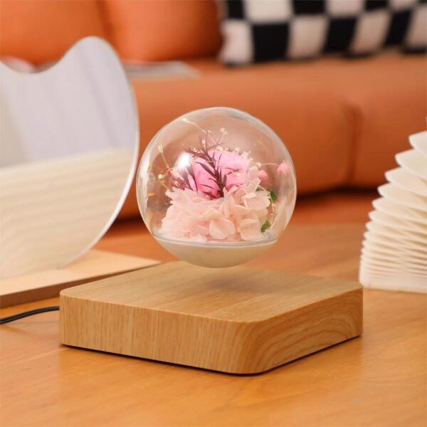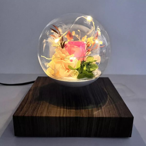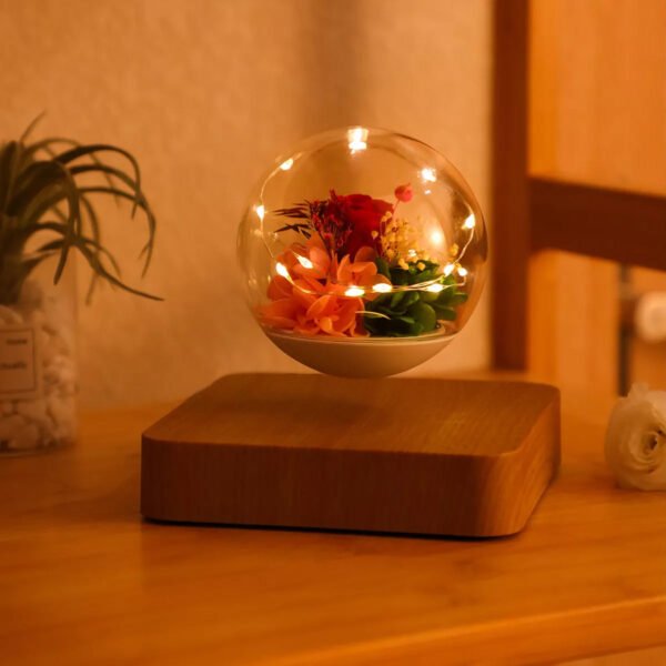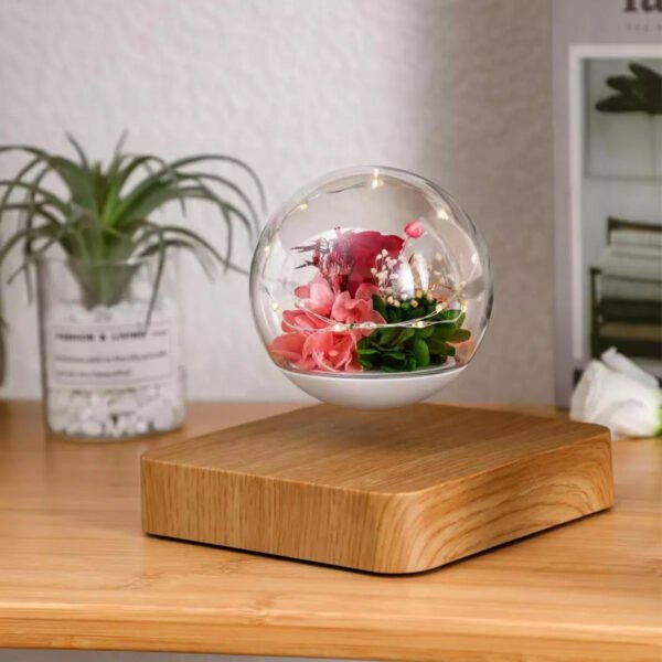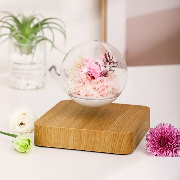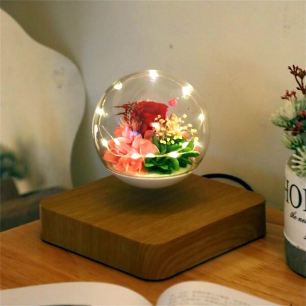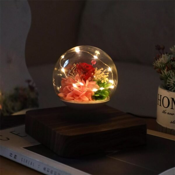Lámpara de levitación eterna con diseño de rosa y luz LED.