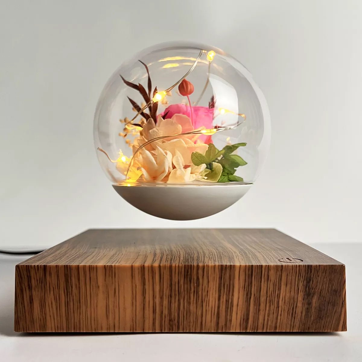 Lámpara de levitación eterna con diseño de rosa y luz LED.