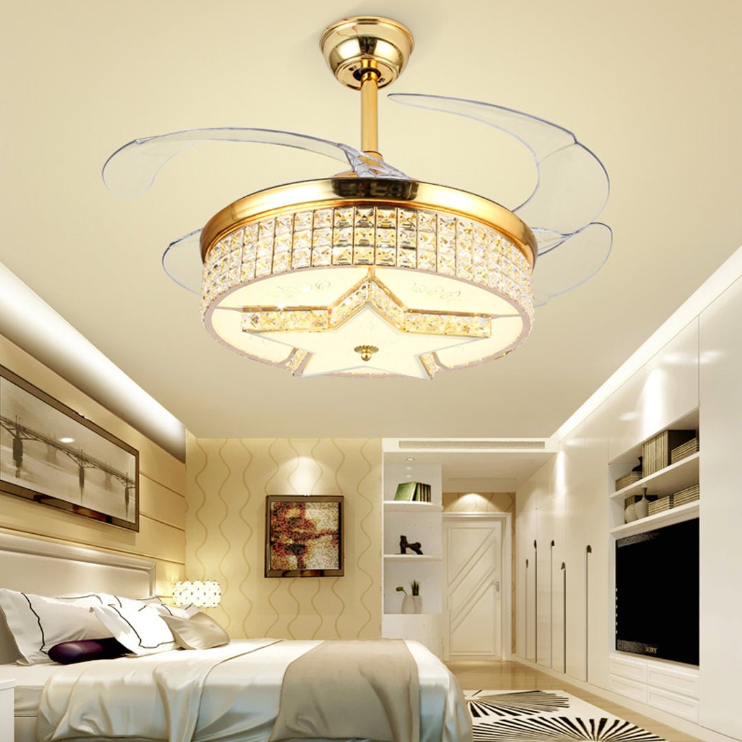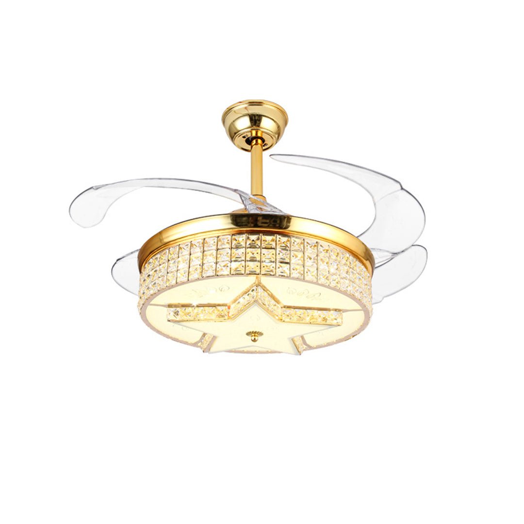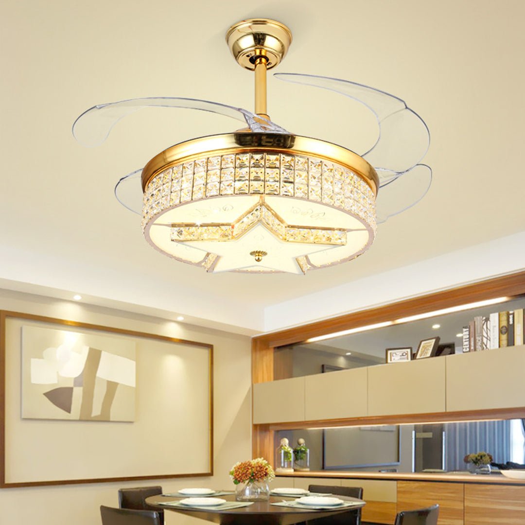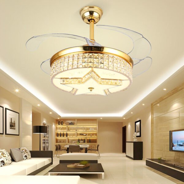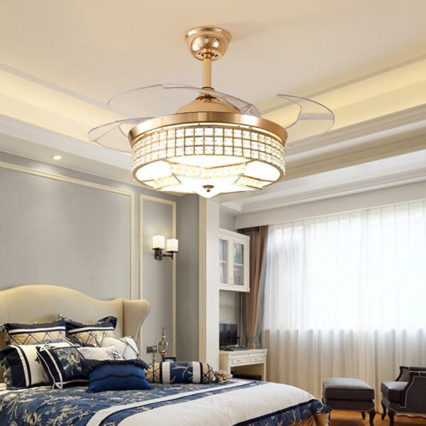 ✅ Retractable ceiling fan: with retractable acrylic blades that automatically stretch and come inside when turned on and off. This ceiling fan cools the interior temperature of the house during the summer and extracts humidity during the winter. It can turn on the lights separately when you turn off the fan. The lampshade is fully decorated with grade A K9 crystal. absolutely stunning when the lights are turned on. This fan makes your room full of luxury by giving it a delicate and modern touch at the same time.