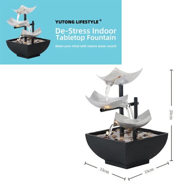 This relaxation tabletop fountain is perfect to place in your office or home. whether it’s in the living room. bedroom. study or any other room where you need a touch of serenity. In addition. its compact design makes it ideal for small spaces such as desks and work tables.
