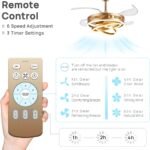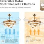 ✅ With 4 transparent acrylic blades that are capable of automatically retracting when the fan is turned off. Luxurious style fan is an excellent functional choice for home decor. It has a silent motor that provides a strong air flow and a perfect environment that will not interrupt your rest or sleep. It runs smoothly and without shaking. creates a comfortable living space and significantly improves the interior design of your home.
